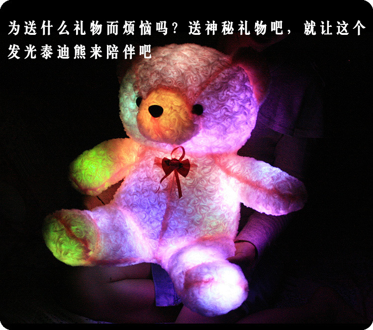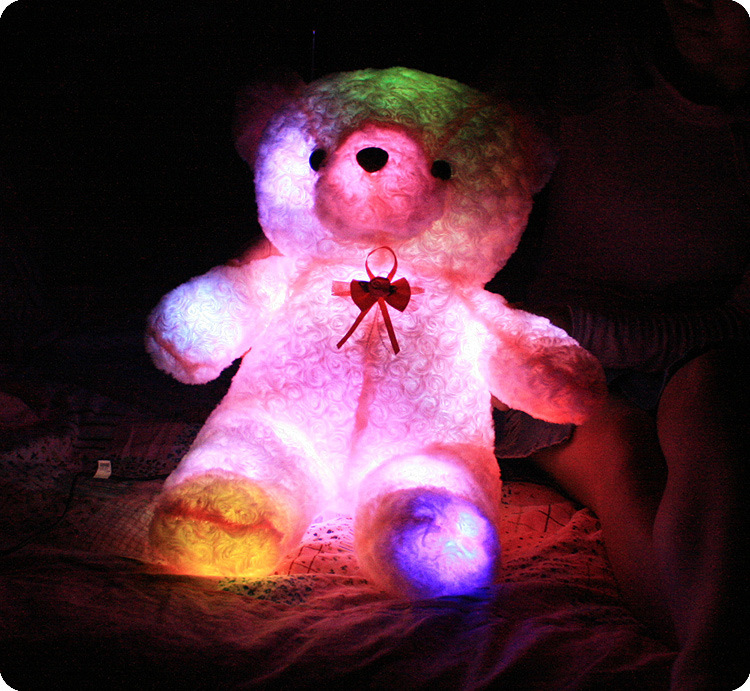 此泰迪熊為升級版,燈的佈線全新升級,使整個泰迪熊身體每個部位都發光通透,看起來發光效果非常之絢麗多彩,最好的情侶禮物,還是最溫馨的夜燈