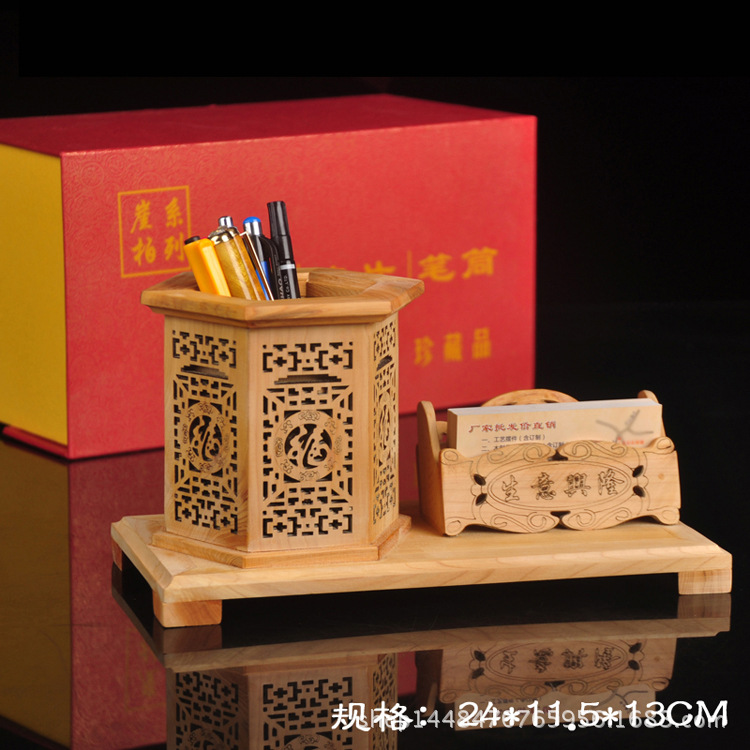 【品名】崖柏筆筒名片盒組合裝珍藏品