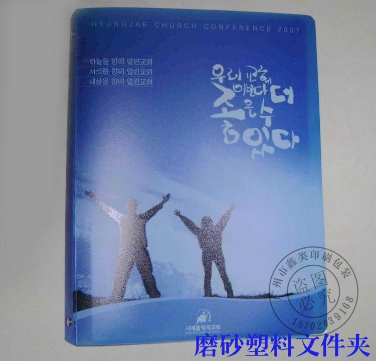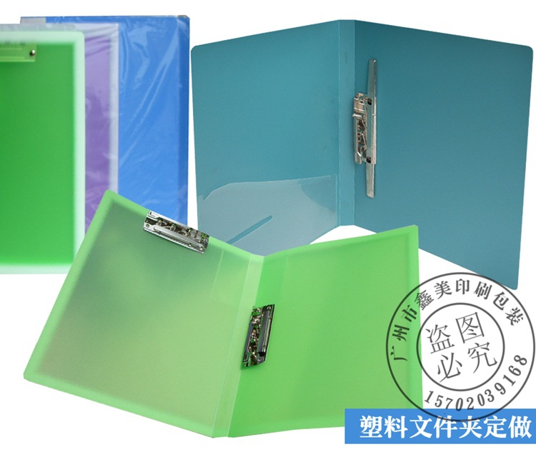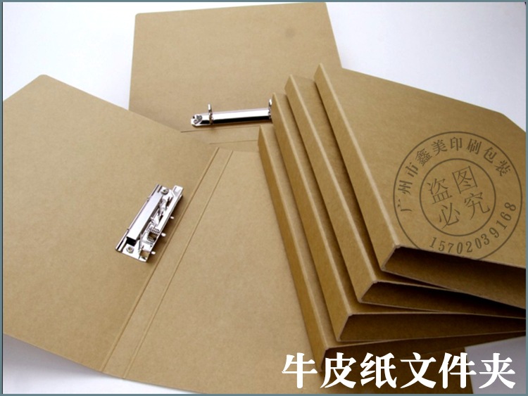 文件夾的平麵尺寸通常為A3,A4,A5較為常用(不規則可另外設計)。會根據不同客戶要求而定。是各辦公室必備品,一個完整的文件夾要經過印刷,覆膜,裱灰板,模切,折疊,裱膠,裝鐵夾,等多道工序的加工完成,為瞭能外觀看起來更完美,可以在表麵做更多的工藝處理(如:燙金/銀,擊凸,絲印,局部UV,。。。等)其用紙常用128-或者157克克雙銅裱 2MM厚度左右的灰板。