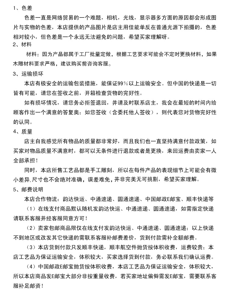 1、快遞:我們隻發申通、中通、順豐(默認為申通,發順豐先與客服聯系)
