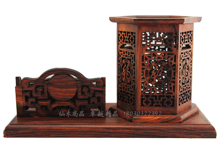 中國的筆筒工藝精湛,意趣橫生,超然脫俗。其取材多為竹、木、陶瓷,也有用玉石、樹根、象牙、金屬等。造型多為圓筒形,直口,直壁,也有器口為梅花、葵發、方頭、卷書、八方、六方、四方、不規則等不同形態的。雖形製變化不大,但裝飾方法最為豐富,有刻、鏤、雕、繪等多種藝術手法。竹筆筒意境深邃,文趣盎然。木筆筒古雅大方,取材考究。瓷筆筒則青花、五彩、粉彩、青花釉裡紅、哥窯瓷、龍泉窯瓷、鈞窯瓷,琳瑯滿目,無所不有。玉石、象牙、鑲嵌筆筒多以材質和工藝見重,精工奇巧,極富神韻。