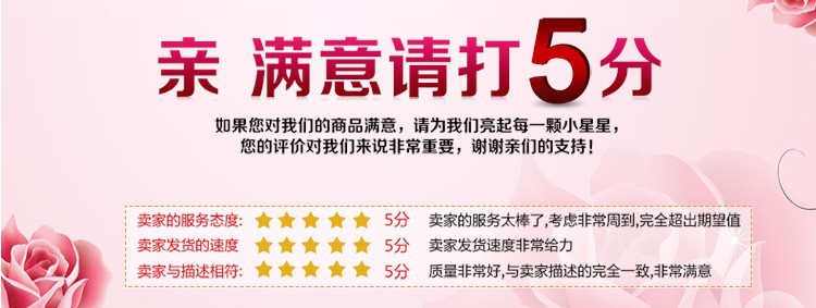 6.關於評價:我們會盡一切的努力以價格質量,以德服人,創造公正和諧的購物環境,升級國民的購物環境和習慣,網上購物好處多,需要大傢共同珍惜共同去努力維護,用良心去對待每一筆買賣行為!我們將努力追求100%好評,十分歡迎大傢對我們合理評價。確實交易出瞭問題,先要取得溝通,化解誤會和矛盾,可以協商解決,是我們的疏忽和責任我們會認真負責對待。理解和尊重是相互的!