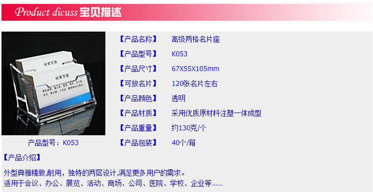 科記 K-053 高級二格名片座 透明名兩層兩格展示名片座盒架