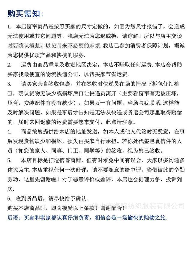 經過嚴格的質量檢驗,在調試過程中,窗簾類產品發現有質量問題,公司當場處理,並承諾在當天或一周內解決(缺貨等特殊情況除外);