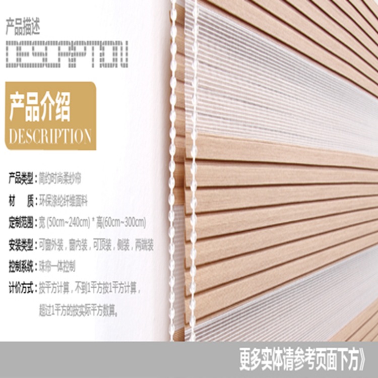 柔紗簾麵料是滌綸,表麵經高溫、高壓、防靜電處理,防水、不沾灰,易清洗。清潔保養簡單,日常維護可用雞毛撣撣拂,或吹風機低溫吹拂,如有污漬,可用海綿或軟佈蘸溶有中性洗滌劑的溫水輕輕擦拭,然後自然晾乾