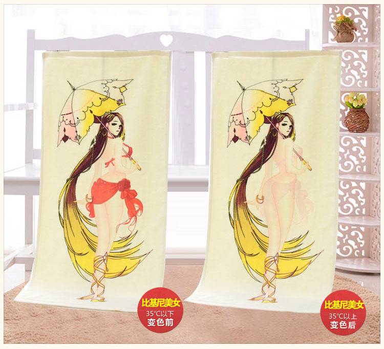 1)本產品使用時水溫超過34攝氏度會產生變色效果.當溫度下降時,毛巾上的圖案又會變回正常情況下的樣子.