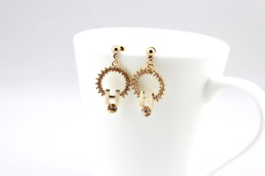 韓版鍍18K金精品耳飾品批發【太陽の雨 H版金鉆晚宴耳環 女 】_韓劇明星同款商品_熱賣商品批發_貨源_批發一路發