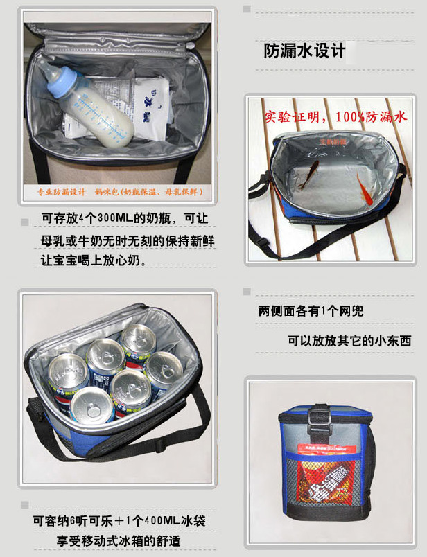 用於盛裝保溫物品的冰包,它包括包體和包蓋,包體和包蓋內襯有保溫材料夾層,包蓋上設有取物口,取物口上蓋有小蓋,小蓋內襯有保溫材料夾層。戶外野餐或日常生活皆可使用的,用於裝盛各種食物並保持食物溫度和鮮度的包袋,屬於戶外箱包的一種。冰包是一種具有恒溫效果的包,可保冷、保熱(具有冬暖夏涼作用),產品保溫層為超厚保溫棉,提供良好的隔熱保溫效果,產品可以折疊,方便攜帶。