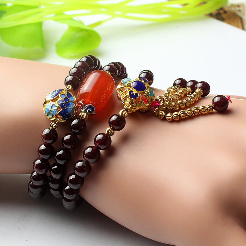 新品天然紅瑪瑙三圈手串 diy原創女款瑪瑙燒藍配飾品手鏈批發