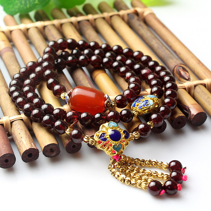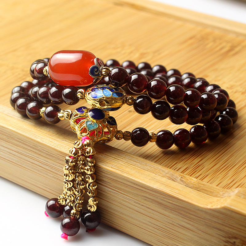 天然紅瑪瑙三圈手串 diy原創珠寶流蘇女裝飾品108佛珠手鏈批發