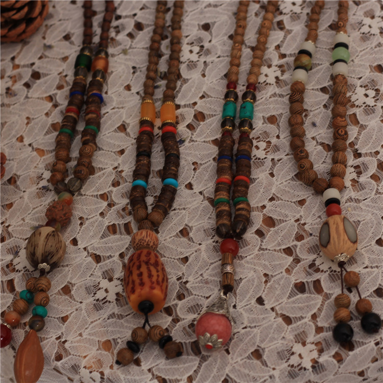 民族風復古長款木珠項鏈掛墜夏百搭棉麻衣服裝飾配飾男女T恤上衣