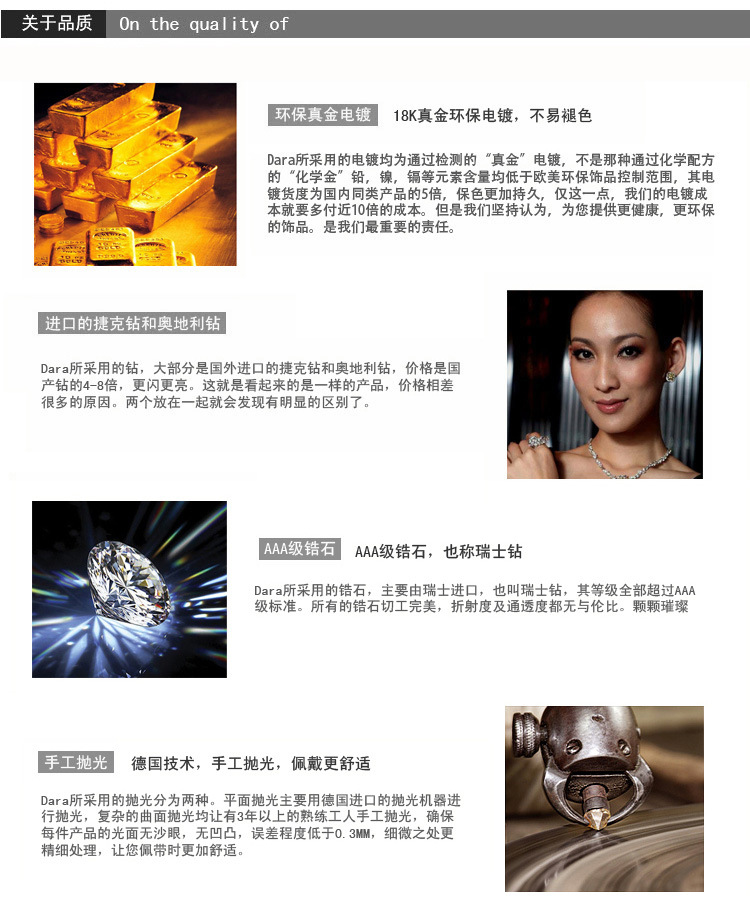 (3)需要不定時清潔首飾,切勿用清水、超音波清潔劑(器)或含有酒精或任何市麵上出 售的珠寶清潔劑作清洗,隻需用乾佈做清潔即可。