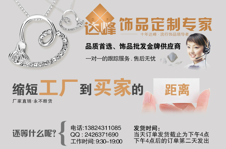 (4)合金飾品避免長期暴露於潮濕空氣或強烈光線下。首飾需常更換,同一件首飾,應避免長時間佩戴,尤其是在炎熱的夏天,首飾鍍層長期接觸汗水,容易消蝕,因此最好是預備多件飾以用作經常替換。