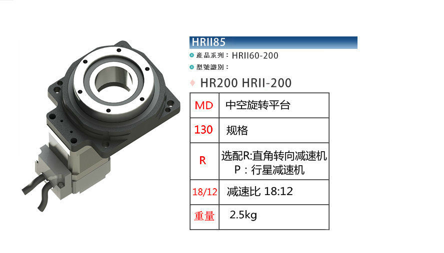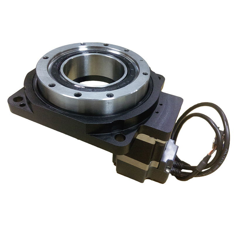 中空旋轉平臺是一款革命性產品。用於多種旋轉運動場合。可取代DD MOTOR與凸輪分割器。集高工作效率,高精度,高剛性,高性價比於一身。是旋轉運動機構中革命性的產品。在兩者之間取得平衡,重復定位精度≦5秒,馬達輕松配製,承載穩重,可搭配AC伺服馬達或步進馬達做任意角度分割,既可滿足分割器無法達到之數位控製,定位精度又可媲美DD馬達。可大幅度降低成本,為您帶來意想不到的效果。