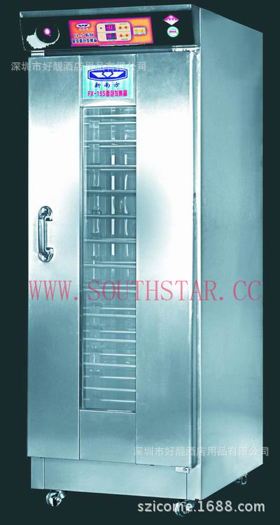 → 它采用微電腦液晶顯示控製器,使用電熱管發熱產生熱量和蒸氣,通過熱風循環,使發酵箱內產生相對溫度為60%-99%、溫度為36℃ -38℃ 的最佳醒發環境。