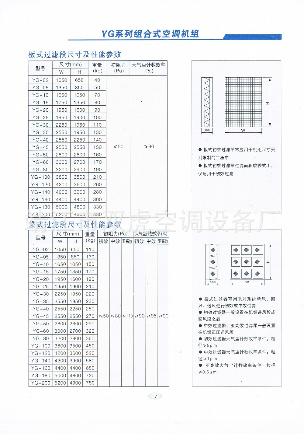 5、 機組過濾段采用滌綸無紡佈袋式過濾器,具有過濾效率高,阻力小、可拆卸、易清洗和濾料可更換等優點。