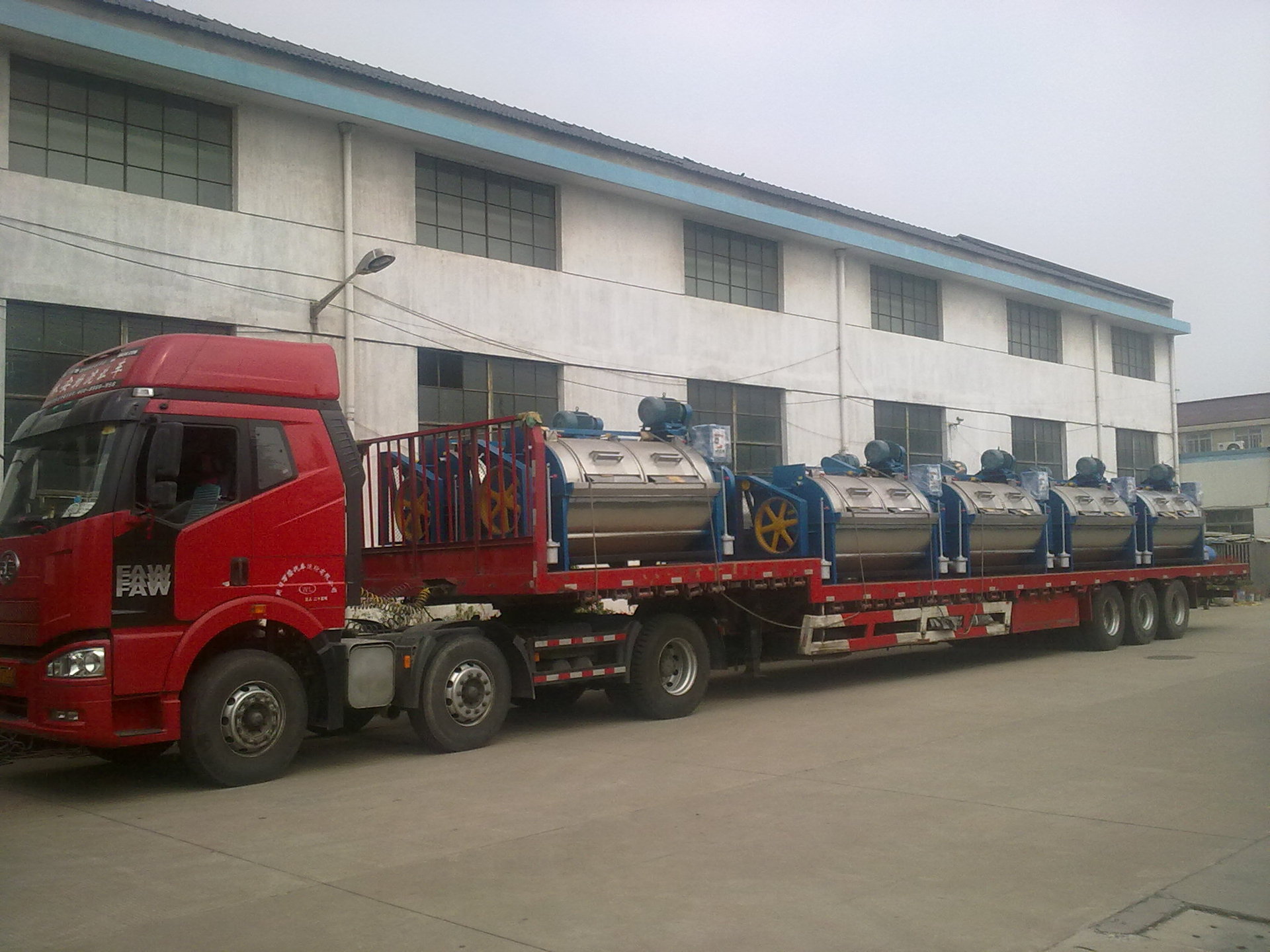 最近,我公司研製的國內最大的牛仔服洗滌機、脫水機、烘乾機具有變頻調速、氣動放水、自動控溫等功能。