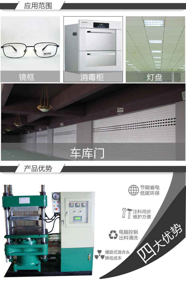 用途:用於生產硬泡、半硬泡等聚氨酯製品,如:冰箱、冰櫃、消毒櫃、車庫門、燈盤、裝飾條、鏡框、花卉、仿木製品等。