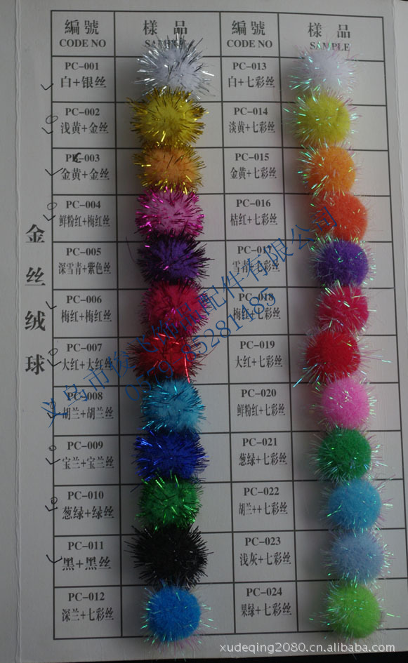 款式:亞克力毛球,金蔥毛球,條紋毛球,混色毛球,棉毛球