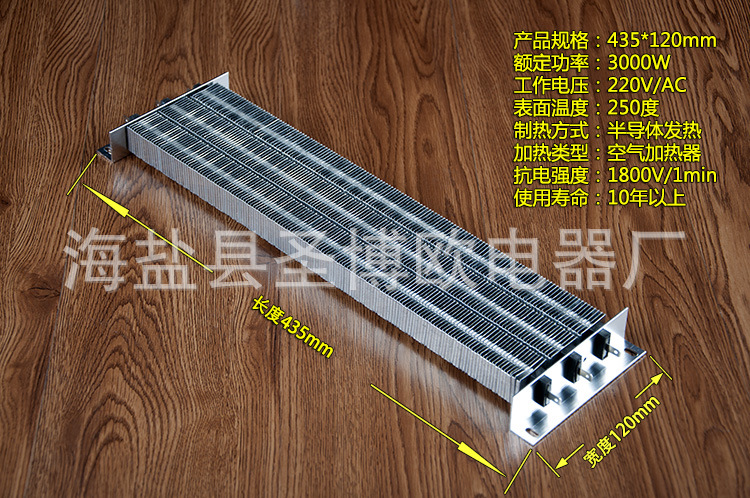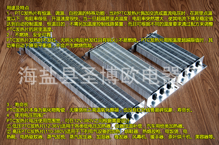 PS: 此款PTC加熱器功率和長度均可按要求定做!