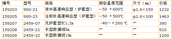 | 編號 | 型號 | 溫度范圍 | 護套直徑×長 | 價格 |