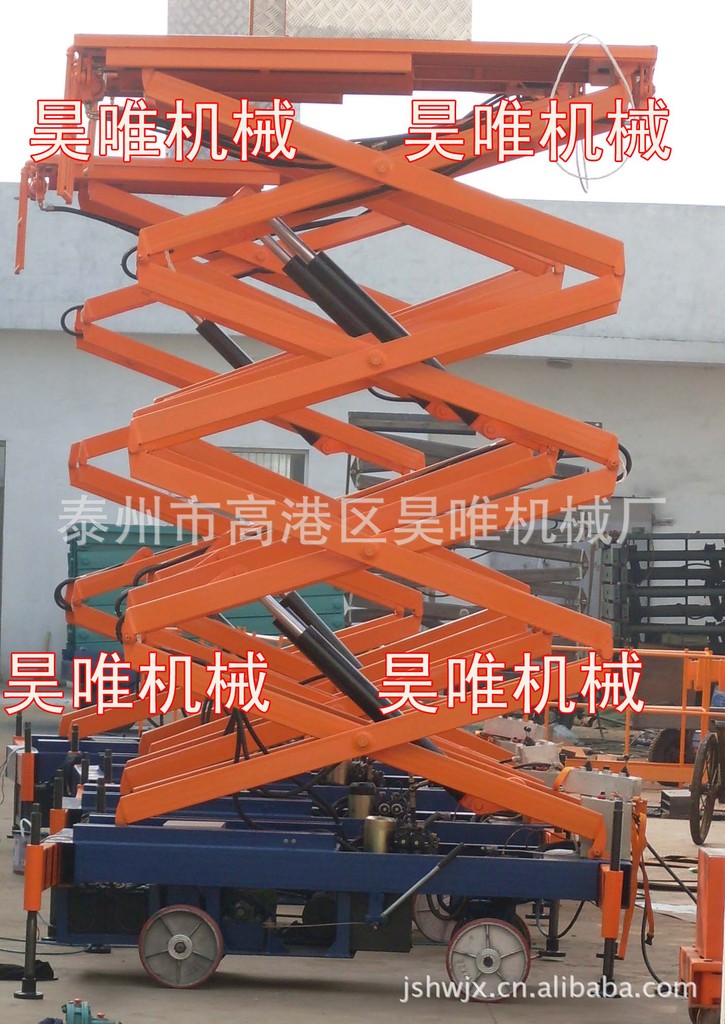 昊唯升降機的機械結構一般由底座、臂架和工作臺三部分組成。底座采用相應強度鋼板焊接而成;臂架為剪撐鉸鏈式垂直升降,采用高強度無縫矩形管製作,強度高、外形美觀;工作臺能幾人同時操作,並設有安全護欄和低壓操縱屏,操作安全可靠。
