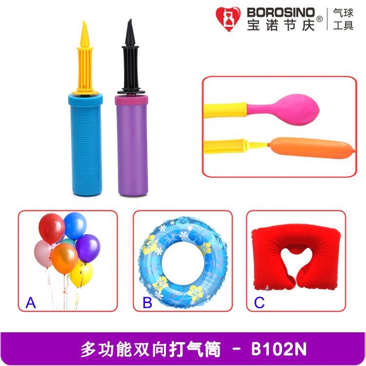 產品簡介:這是一款新設計開發的手拉氣球泵,雙向打氣,雙倍功能,特設防回流裝置,高壓力,高效能。適用於為氣球及其它裝飾氣球充氣。