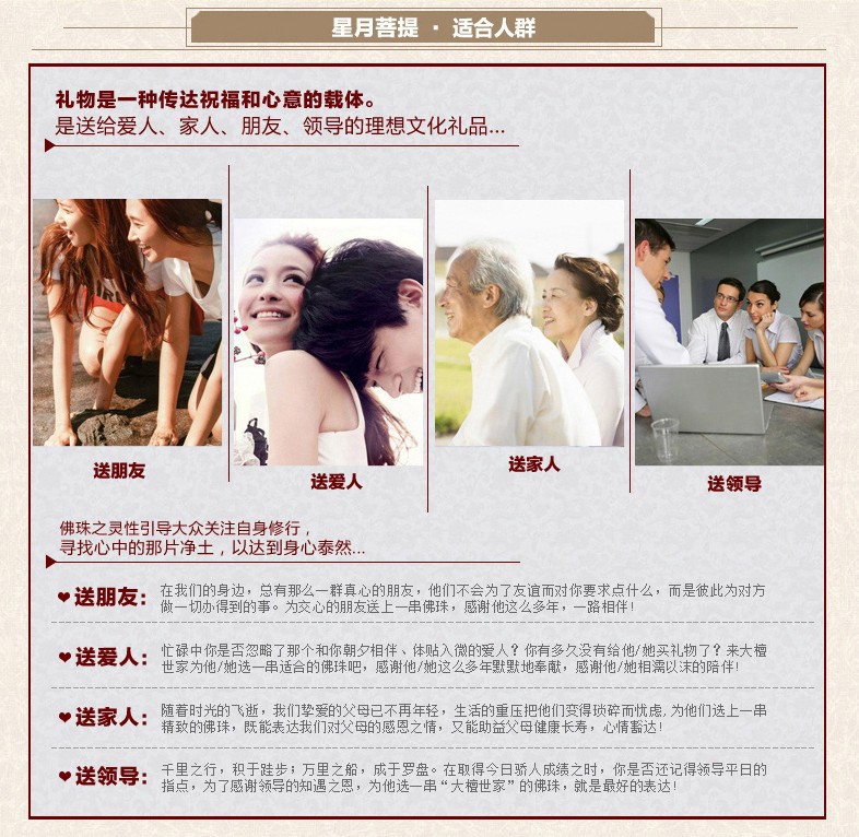 | 致 新 老 顧 客 此款產品需要您自己手工自創自串成鏈,串出屬於您獨一無二的款式 我們的產品出廠都是采用真空包裝保存發送到您的手中的,所以請您仔細觀看外觀大小是否滿意再拆開真空包裝,讓他變成屬於您獨一無二的菩提子,一輩子的歸屬。菩提跟其它的飾品不一樣它是不斷變化的,是越玩越有價值的,它的樣子、品相是靠吸收人體的鹽分和油脂,慢慢氧化逐漸變化的,從包漿、變色、掛瓷、到開片是需要很長一段時間的,或者說它靈氣、法力、功德也是隨著時間慢慢增強的。自己為自己串一條自屬於自己的菩提。 【所以請您務必看仔細是否喜愛再拆開真空包裝!一旦拆開視情節退換,請您寬恕】 親,我們的生產的菩提,沒辦法讓所有人都滿意!所以我們特此承諾!您收到不滿意可以退貨,我們包來回運費的,不要收到貨嫌棄我這嫌棄我哪,然後不想退貨,來退錢!或者直接給我個中差評,我們不歡迎您這樣的坑貨,做生意不容易,望您別欺負!(貪一時的便宜,自有天定!) 發貨標準:108顆素珠+6顆備用珠