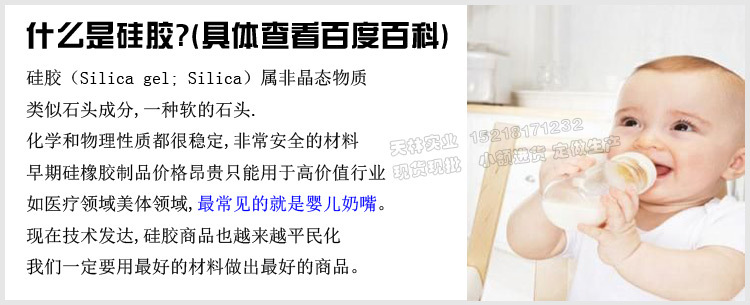食品級嬰兒奶嘴矽膠材料安全無毒,無異味,不溶於水和任何溶劑,通過FDA食品認證