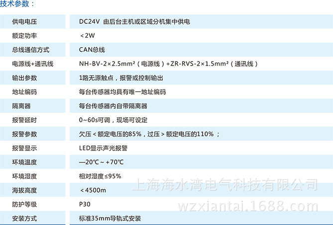 監控傳感器實現對消防設備電源(常電與備電)交流供電回路的 電壓、電流值檢測,傳感器具有電壓、電流值監測選擇功能,用戶 可根據供電回路的監測要求,自行設置。