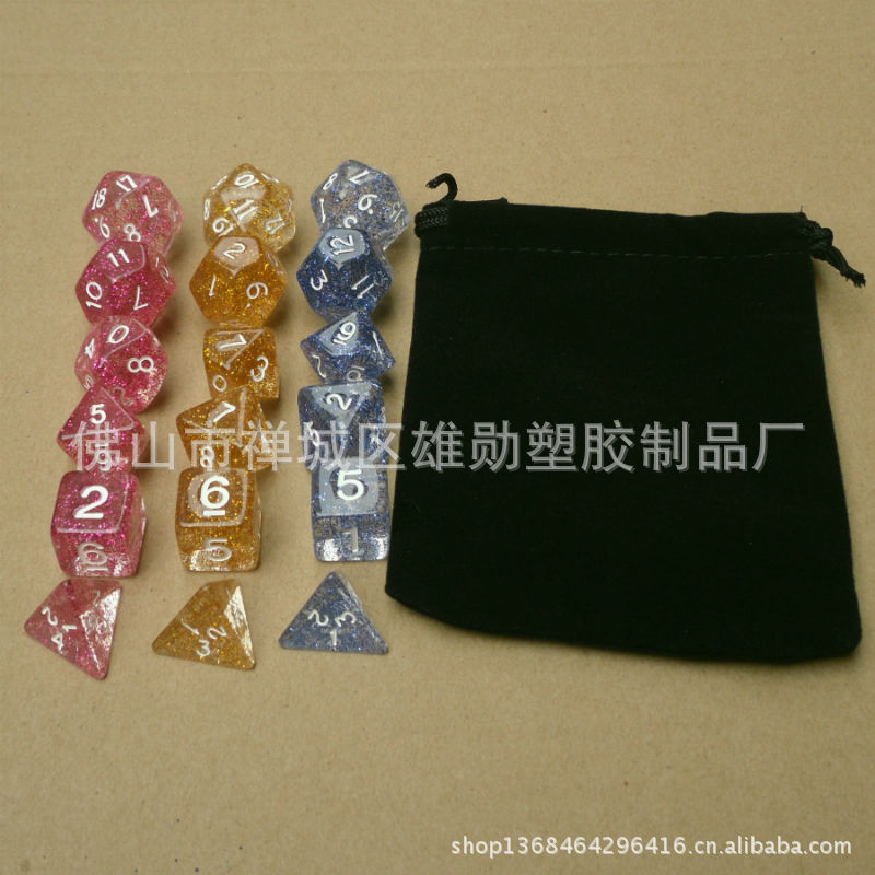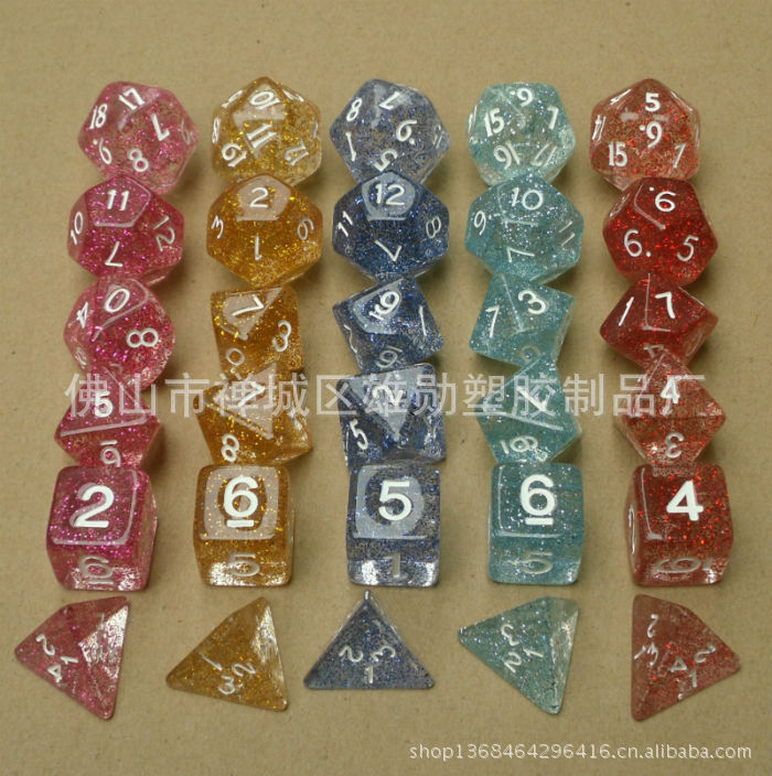 價格:標價是一套7顆骰子蔥色閃粉的價格,夜光的價格另計,具體請咨詢客服,謝謝!(4麵,6麵,8麵,10麵2顆,12麵,20麵各1顆),標註單價對應是第一張圖片主圖蔥色迷彩色8色的單價,實色不透明的的是另外的鏈接。