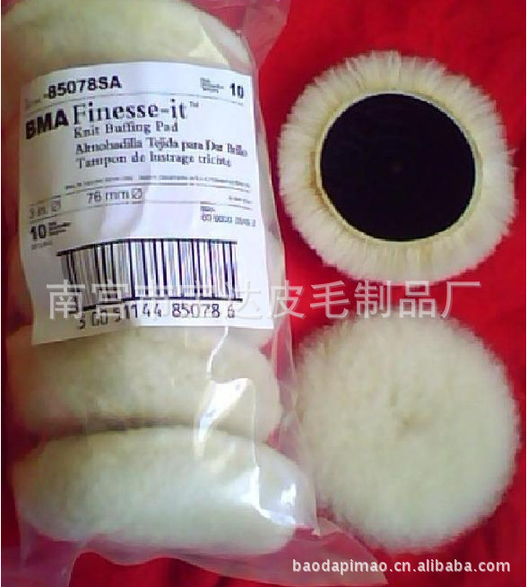 本廠羊毛球 選用優質羊毛,拋光效果好,不會留下難以清除的旋痕。背部尼龍搭扣設計,更換方便自如 .本廠羊毛球主要生產進口澳洲羊皮2、3、4、5、6、7、8英寸拋光羊毛球及兔毛球,並可以生產2、3、4、5、6、7、8英寸毛紡織做工羊毛球(用羊毛線織上去的毛),羊毛含量高達98%以上。還可以針對客戶特殊需求定做。本產品非常廣泛地應用於木器傢具行業、汽車製造、汽車輪轂等行業,專用於表麵及零部件的打磨拋光。