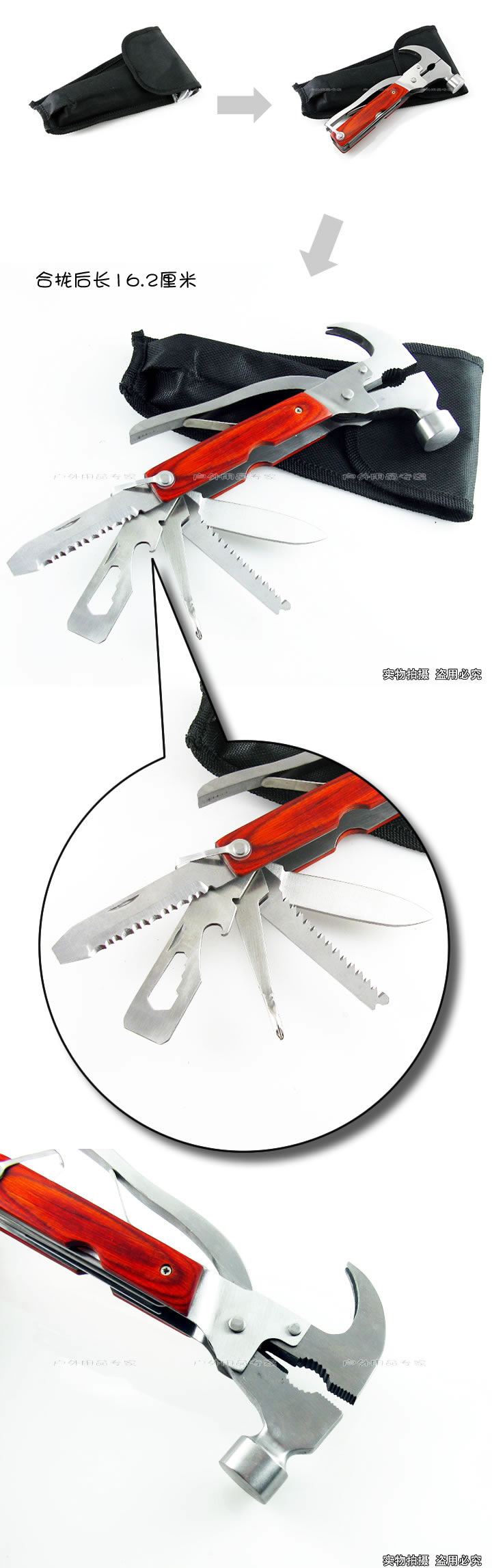 【主要工具】老虎鉗、線剪、錘子、刀、十字螺絲刀、鋸子、鋸齒刀、一字螺絲刀、銼刀、開瓶器等多種功能於一體。