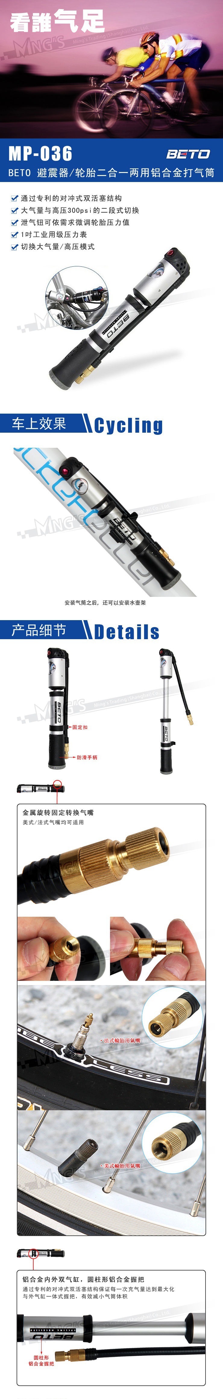 新到臺灣BETO MP-036(便攜式)打氣筒,原裝臺灣生產,帶氣壓表.