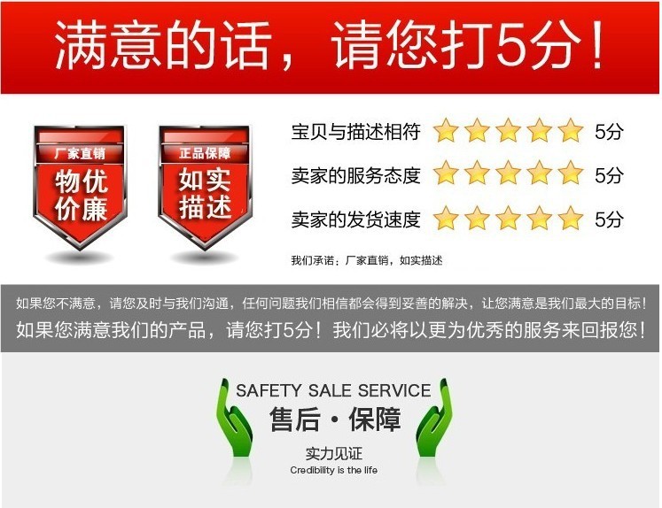5.您的每一個評價對於我們來說都非常重要,在您收到寶貝後,對我們的商品感到滿意的話,請給我們好評,謝謝!