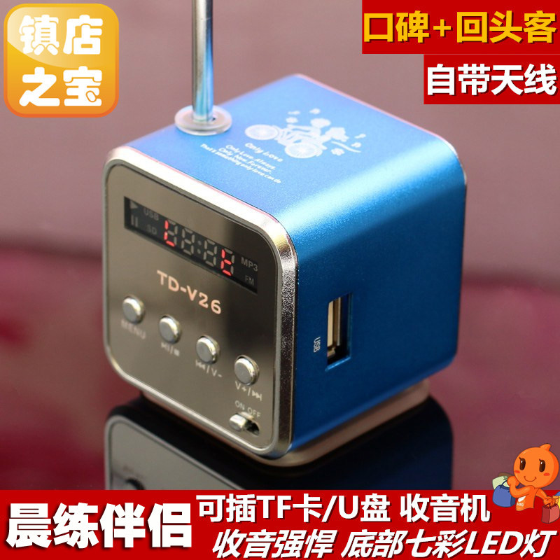 廠傢直銷 TD-V26 插卡音箱收音機隨身碟迷你音響 便攜小音箱帶顯示屏