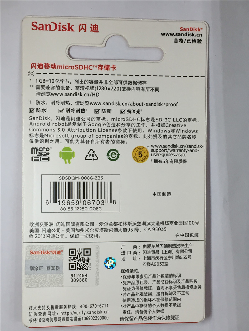 套餐二:官方標配+8GTF存儲卡(全新正品行貨閃迪存儲卡)