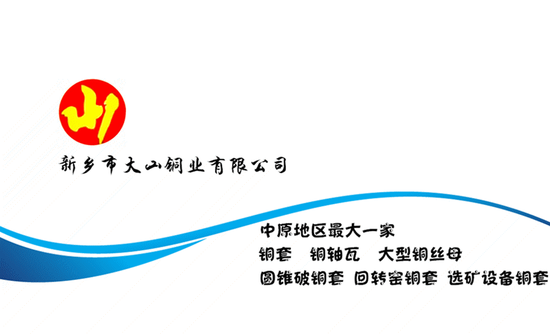 新鄉大山銅套廠傢自創建至今,規模從小到大,憑著過硬的技術、豐富的經驗,優質的服務和良好的信譽,不斷的發展壯大。在短時間內完成瞭企業創建、完善、發展過程,銅配件產品已經銷售到新疆;北京;河北等等。歡迎各界人士前來洽談,聯系人宋佳,手機13653901442