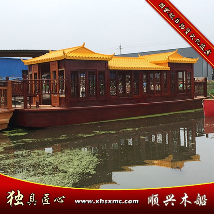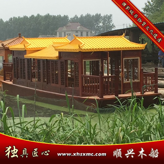 本廠以祖輩獨特的製作工藝專業生產“順興”木船,“順興”木船外形古樸典雅、美觀大方,輕巧靈敏而又堅固耐用,以老齡杉木為主要原料,此杉木材質結實、有恝性,輔以鐵釘、麻絲、石灰、桐油等,所造之船吃水淺、浮力大,能載重。我廠主要產品有:大型觀光旅遊船、畫舫船、桅桿篷佈纖夫船、歐式船、貢多拉、竹簾竹席搖櫓觀光船、休閒小劃船、魚鷹船、河道垃圾清理環衛船等。