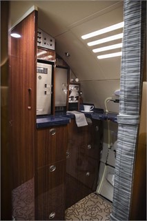 入口包括一個新的設備前廚房(2013),和機艙尾部具有一個廁所,一個衣櫃和訪問到機艙行李。