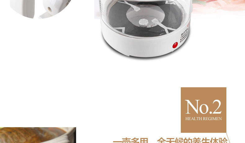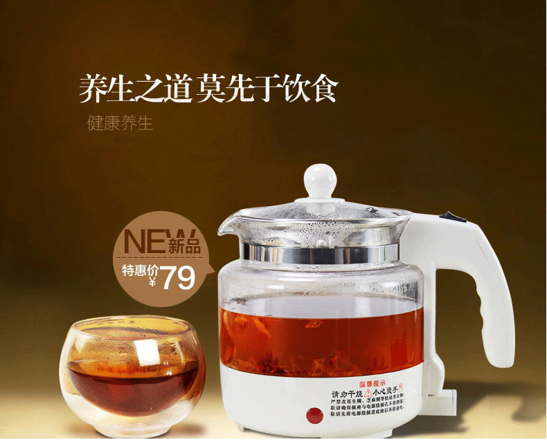 --全玻璃養生壺最大功率410W,功率溫和,完全符合養生火候,均勻加熱,保護水質,活化水分子,最大限度保護食材營養,真正做到綠色健康養生--告別傳統不銹鋼電水壺喝水也要喝最健康的.....