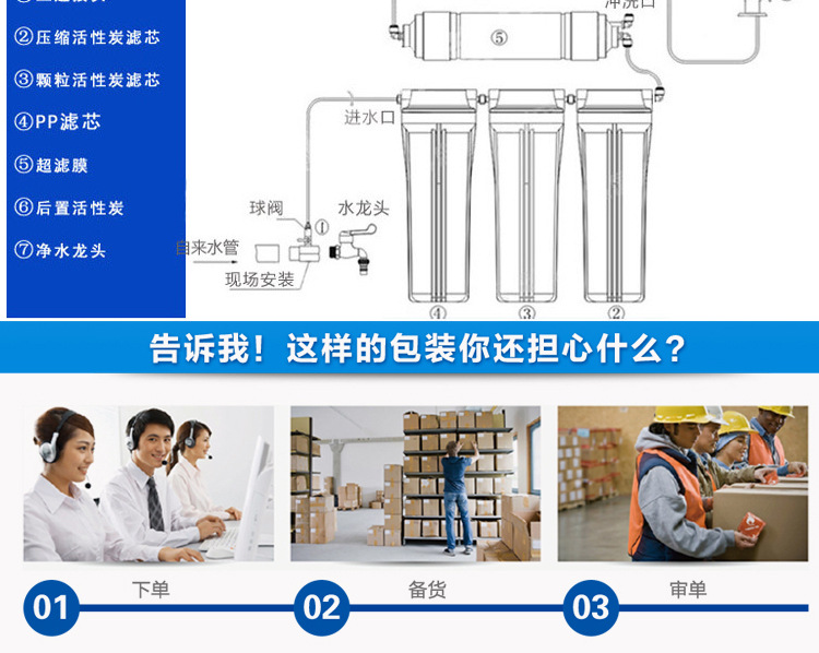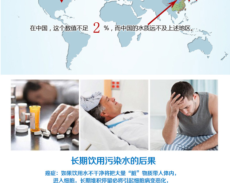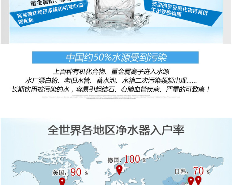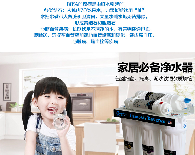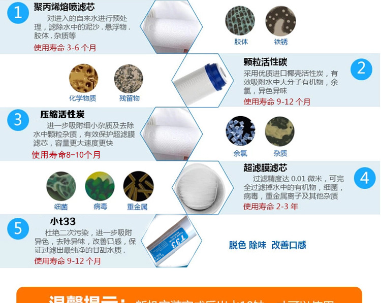2、多級層層凈化,過濾自來水中的泥沙、懸浮物、膠體、有機物、餘氯、細菌等有害雜質;