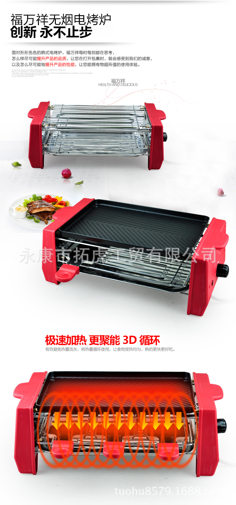 各位實體店的經銷商們,本款烤爐最大的特點為燒烤方式多樣,上烤盤下烤網或上下烤網都可以。燒串時將烤爐上下都換成烤網容量瞬間變大雙烤網模式實現更多人同時燒烤的需求,需要煎魚或煎牛排時可以設置為上烤盤下烤網同時滿足煎和烤的兩重需求。烤爐大容量無煙可拆易清洗,方便實用。【廠傢直銷】標準配置為:烤爐主機1臺,烤盤1個或烤網1張,烤網1張,烤勺3個,不銹鋼接油盤1個,說明書1份。各位親有其它問題可旺旺聯系或來電咨詢(13285798579王),謝謝。