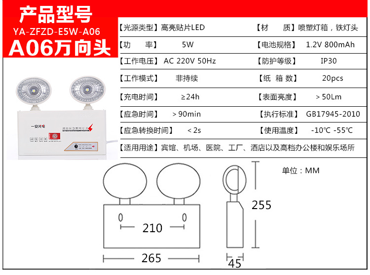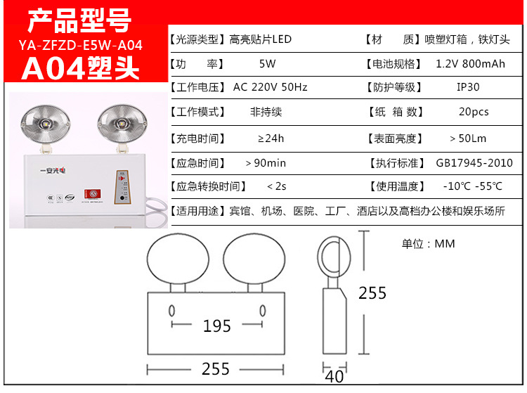 一安光電 新國標消防應急燈 LED高亮停電應急照明指示燈 雙頭充電