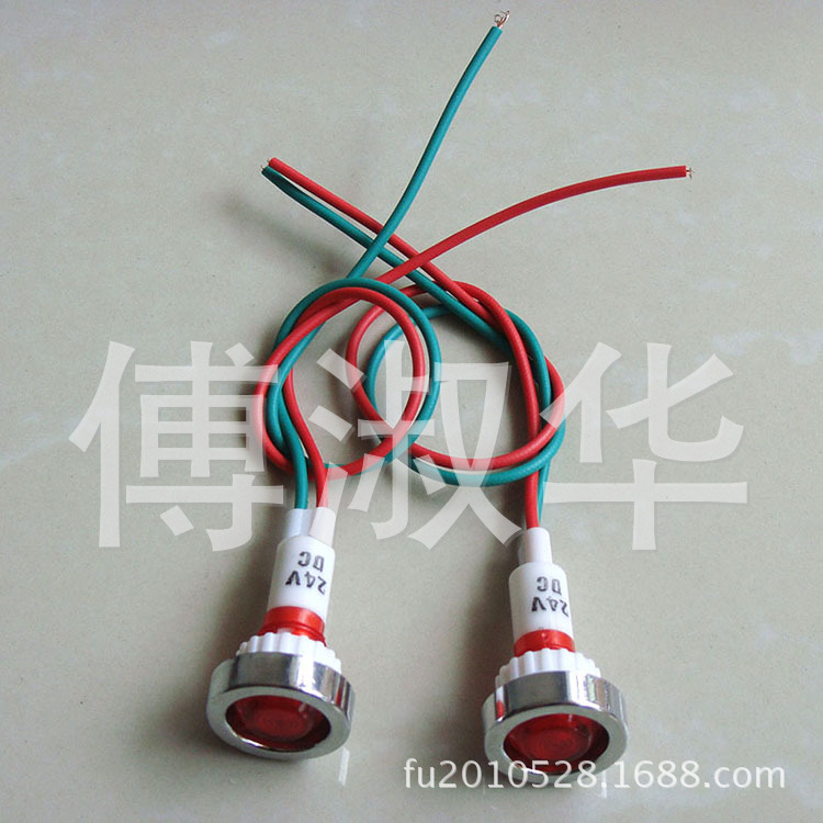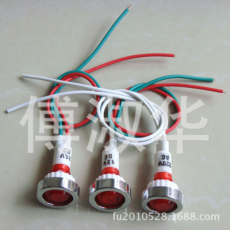 XD10-7紅色帶線指示燈,ABS塑料電鍍鉻帽,線長20cm,24V,安裝孔10mm