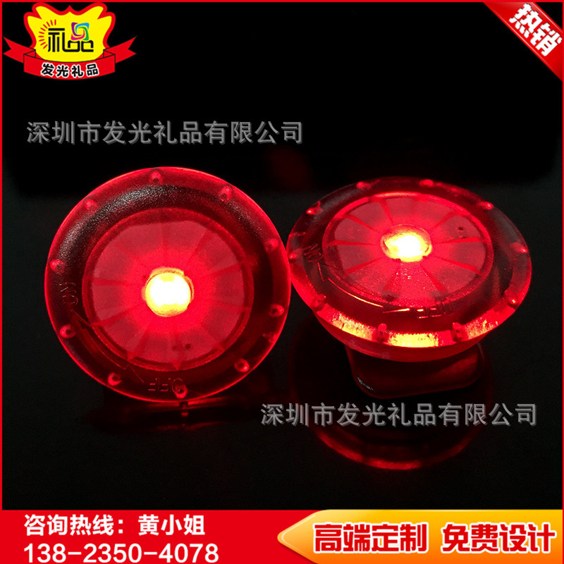圓形led閃光警示燈為ABS材料製作,警示燈外部由上蓋、底座、開關、背夾跟後蓋組成,內部由線路板、LED、鈕扣電池等其它小配件組成,可持續閃光200小時,背麵有ON / OFF鍵開關按鈕,LED燈跟外殼(上蓋)顏色及相對LOGO皆可按客戶要求定製。警示燈可掛在包上、夾在車上起警示作用,也可印上LOGO做廣告促銷用!!!