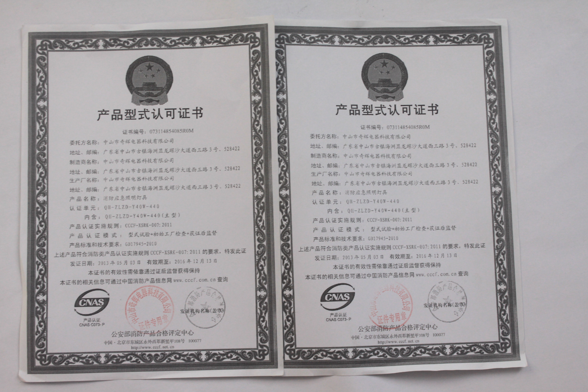 產品完全按照 GB17945-2010 消防標準研發製造。