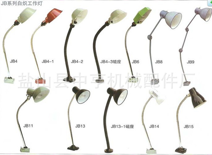 JB系列白熾工作燈 JB系列白熾工作燈適用於中、小型車床、刨床、磨床、銑床及其它設備的局部照明,還可用於鉗工、化驗室、維修等工作照明。