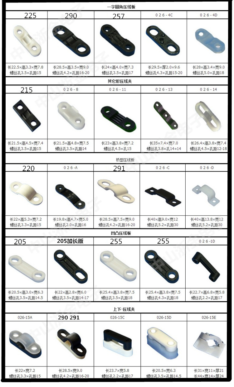 255: 長25.5mm 寬7.5mm 厚4mm 孔徑4mm 孔中心距18mm