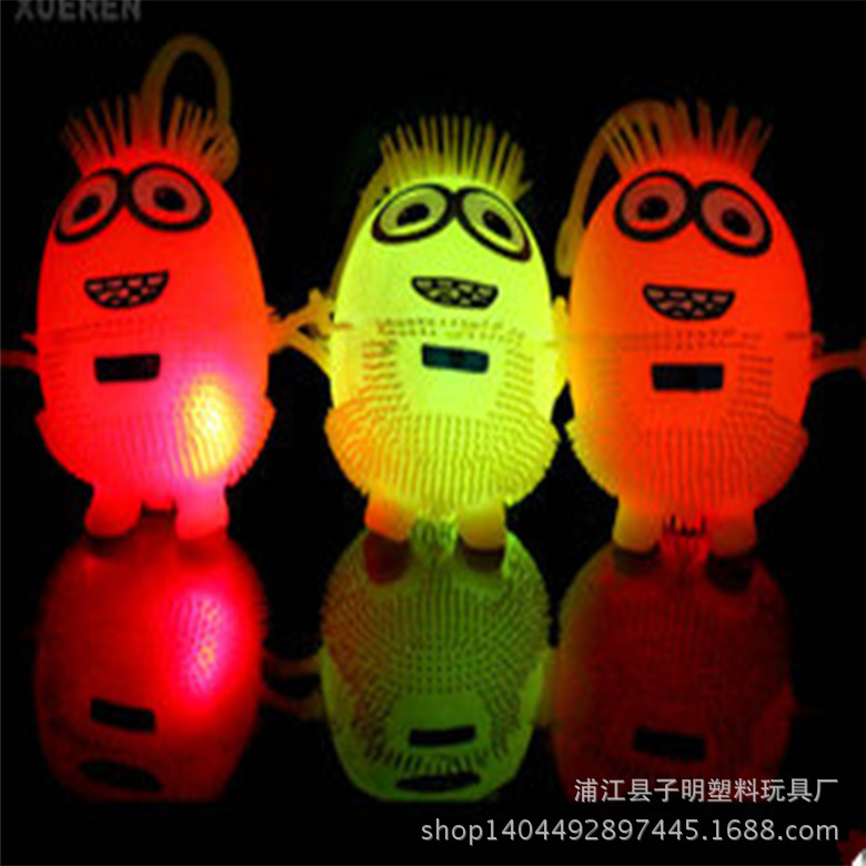 廠傢直銷地攤貨 熒光小號小黃人毛球 發光玩具 閃光兒童玩具批發